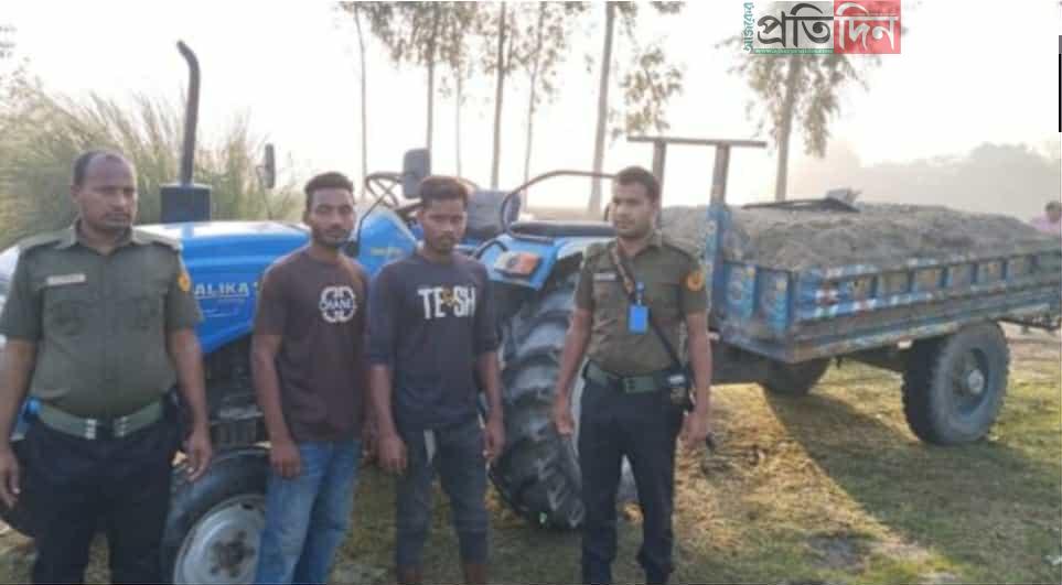 শনিবার (১৮ অক্টোবর) সকাল ছয়টার দিকে নীলফামারীর কিশোরগঞ্জ উপজেলার নিতাই ইউনিয়নের ৬নং ওয়ার্ডের বাড়ি মধুপুর ফুলবাড়ি গুচ্ছগ্রাম সংলগ্ন চারাল কাটা নদী ও তৎসংলগ্ন সরকারি জমি থেকে অবৈধভাবে বালু উত্তোলনের সময় দুইজনকে হাতেনাতে আটক করে উপজেলা প্রশাসন।