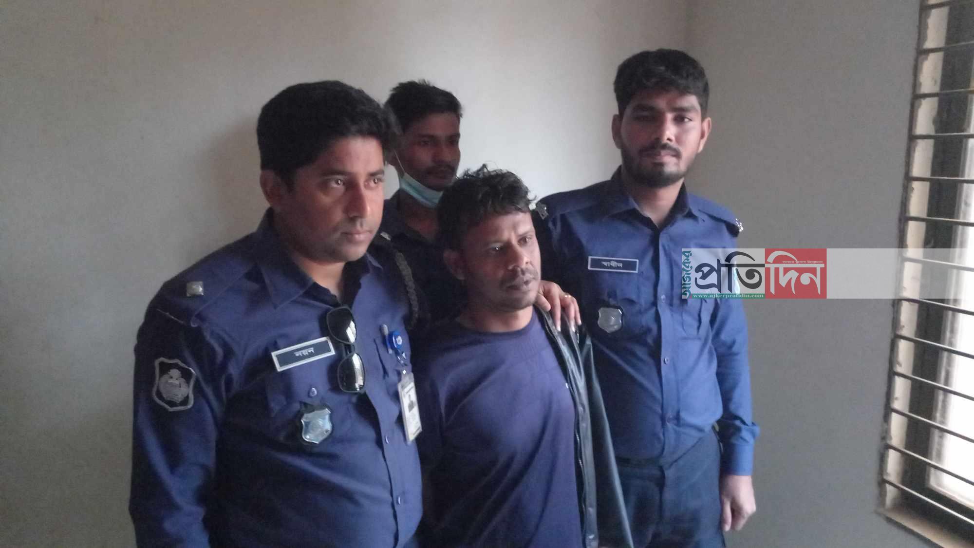 আটক হাফিজুর রহমান (৩৫) রাজবাড়ীর বালিয়াকান্দি থানার অলঙ্কারপুর গ্রামের বাসিন্দা। তিনি স্থানীয় জে কে গ্রুপের তৈরি পোশাক কারখানায় নিটিং অপারেটর হিসেবে কাজ করেন।