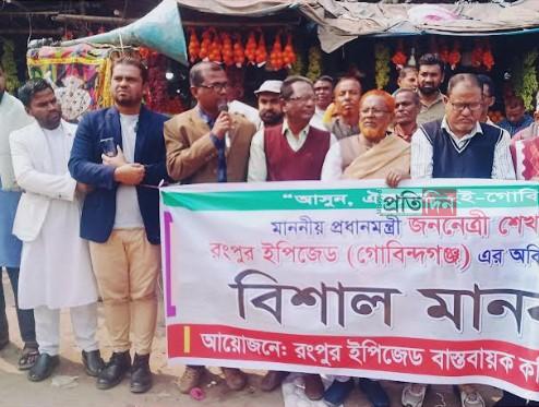 গাইবান্ধার গোবিন্দগঞ্জে ১৪ ফেব্রুয়ারী বুধবার থানা চৌমাথা বিশ্বরোড মোড়ে রংপুর ইপিজেড বাস্তবায়ন কমিটির উদ্যোগে ০২ঘন্টাব্যাপী মানববন্ধন অনুষ্ঠিত হয়।