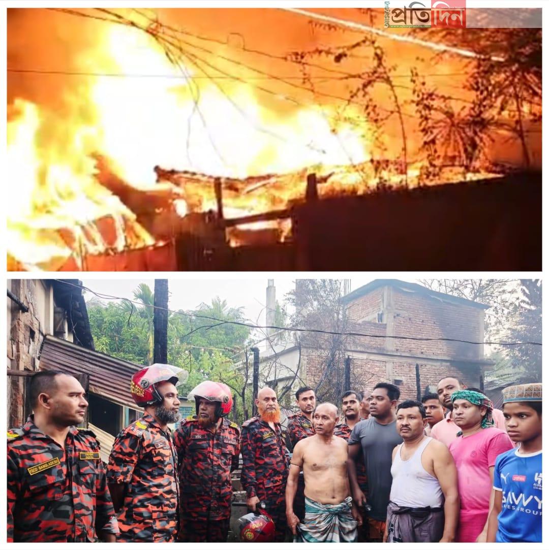 মাধবপুরে অগ্নিকাণ্ডে তিন পরিবারের ঘরবাড়ি পুড়ে নিঃস্ব
