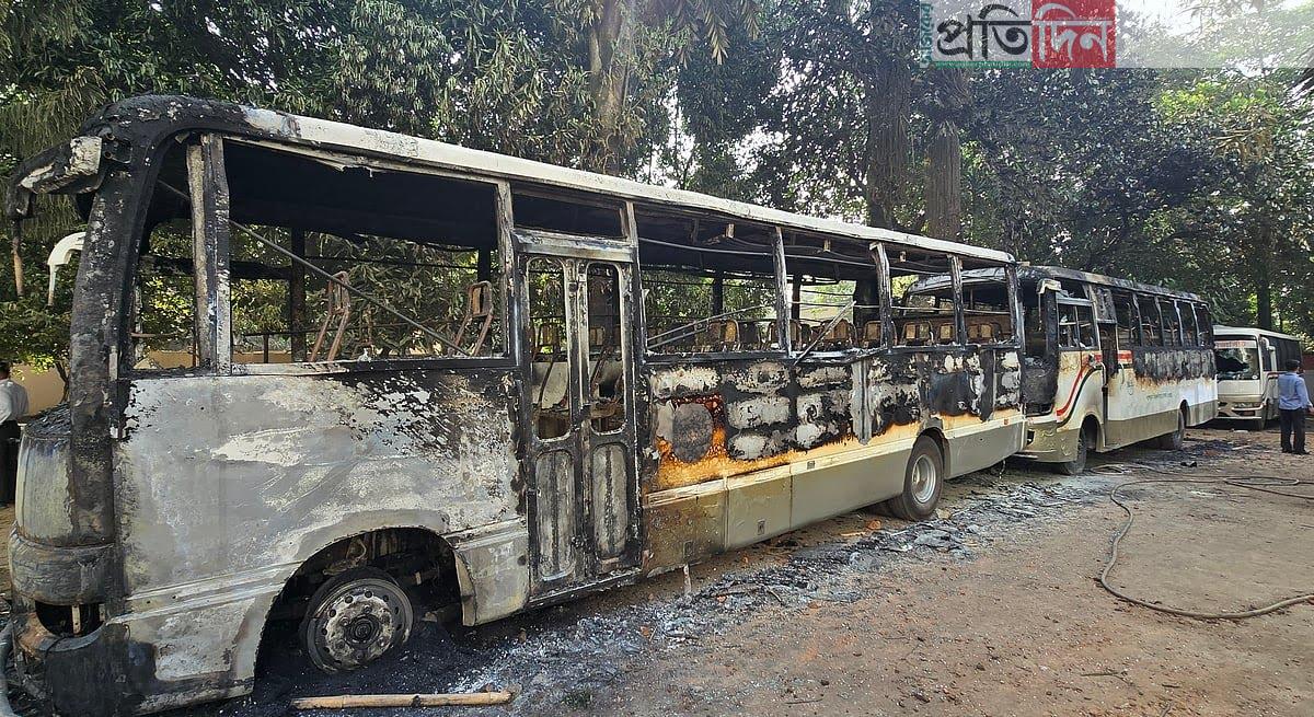 সাভারে ড্যাফোডিল ও সিটি ইউনিভার্সিটির শিক্ষার্থীদের মধ্যে রাতে সংঘর্ষ, বাসে আগুন