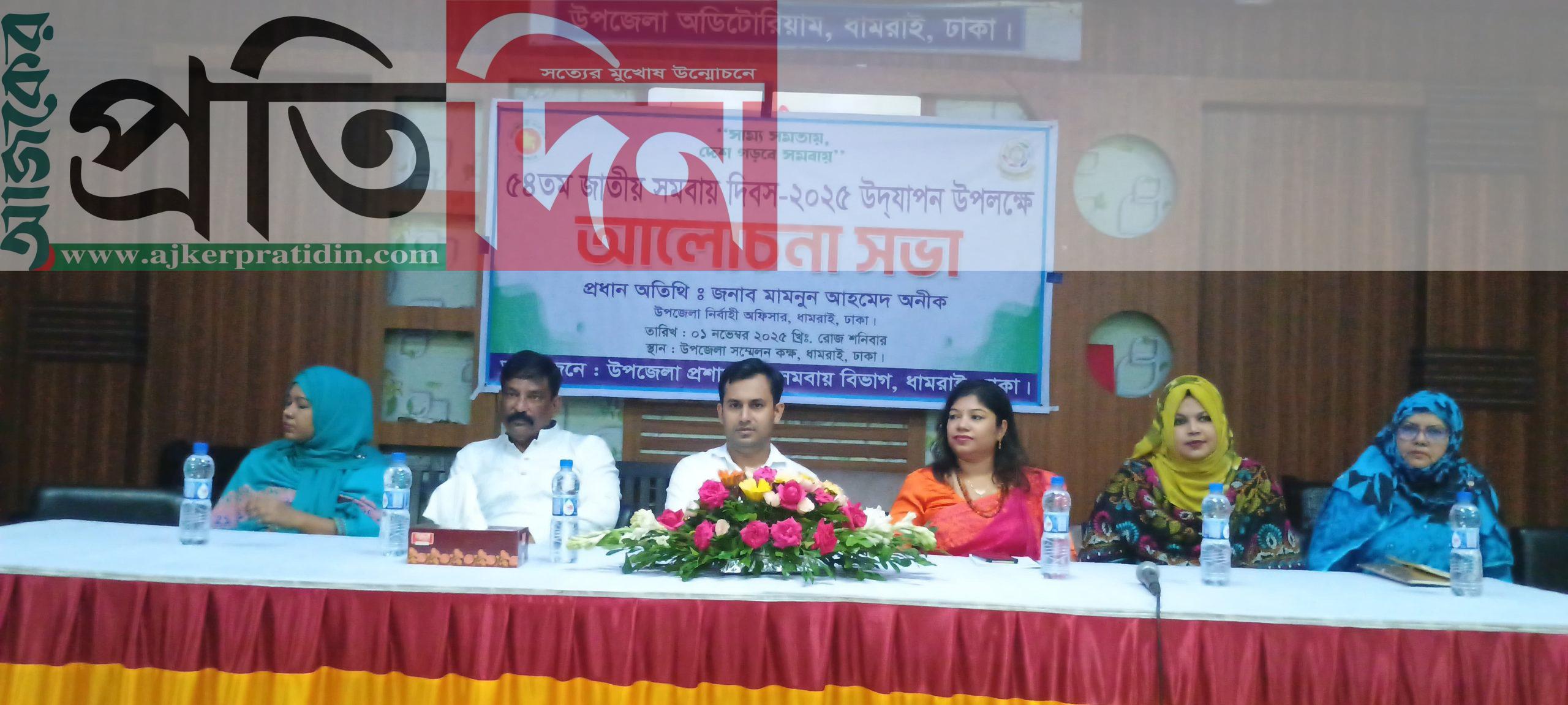 সম্রাট আলাউদ্দিন, ধামরাই (ঢাকা) : “সাম্য ও সমতায়, দেশ গড়বে সমবায়” — এ প্রতিপাদ্যকে সামনে রেখে সারা দেশের ন্যায় ঢাকার ধামরাইয়ে যথাযথ মর্যাদায় পালিত হয়েছে ৫৪তম জাতীয় সমবায় দিবস।