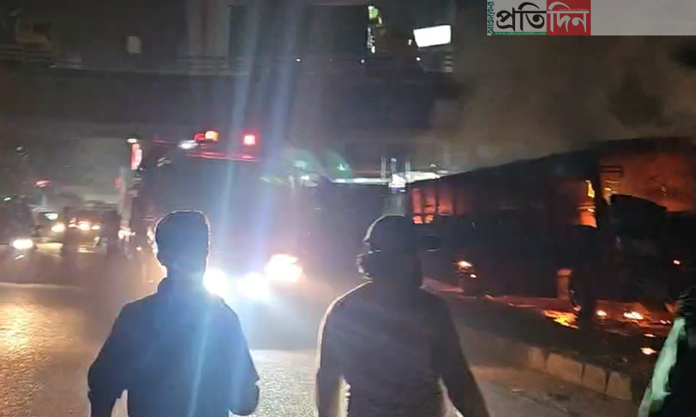 রাজধানীর রামপুরায় বাংলাদেশ টেলিভিশন (বিটিভি) ভবনের গেটের সামনে ভিক্টোরিয়া পরিবহনের একটি বাসে আগুন দিয়েছে দুর্বৃত্তরা।