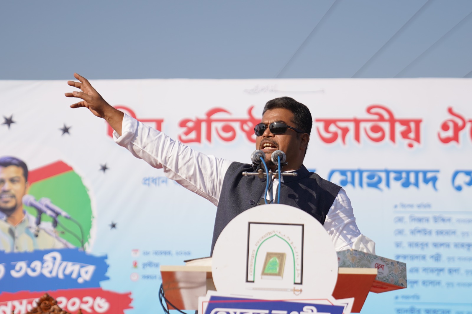 তিনি বলেন, মানুষ চলমান দুর্বিষহ পরিস্থিতি থেকে মুক্তি চায়। কিন্তু তাদের মুক্তির পথ রুদ্ধ করে রাখা হয়েছে। একটি জাতিবিনাশী ব্যবস্থার মধ্যে তাদেরকে আটকে রাখা হয়েছে। এই শিকল ভেঙে বেরিয়ে আসার সময় এসেছে। তিনি মানবরচিত জীবনব্যবস্থার পরিবর্তে আল্লাহর দেয়া জীবনব্যবস্থা গ্রতিষ্ঠার আহ্বান জানিয়ে বলেন, ইসলাম কেবল নিছক ধর্মকর্মের নাম নয়, এটি একটি পূর্ণাঙ্গ জীবনব্যবস্থা। আল্লাহপ্রদত্ত এই জীবনব্যবস্থাই কেবল পারে মানুষকে শান্তির পথ দেখাতে।