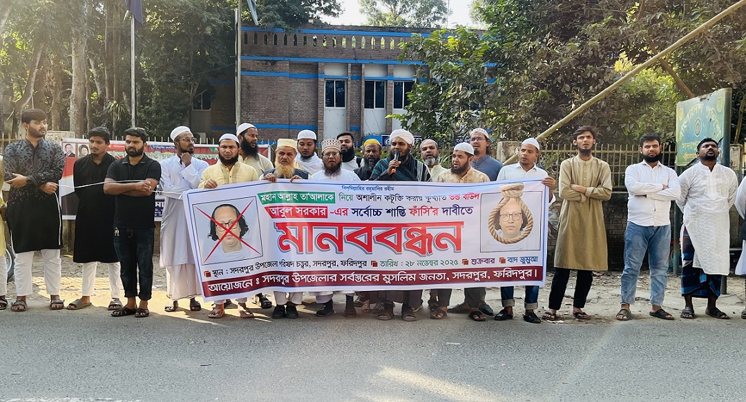 শুক্রবার (২৮ নভেম্বর) জুমার নামাজ শেষে সদরপুর থানার সামনে মেইন সড়কে সর্বস্তরের মুসলিম জনতা এ প্রতিবাদ কর্মসূচি পালন করেন।