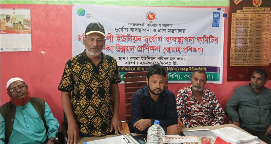 শনিবার (২৯ নভেম্বর) সকালে ইউনিয়ন পরিষদ মিলনায়তনে এই প্রশিক্ষণের আয়োজন করা হয়। ঘূর্ণিঝড় প্রস্তুতি কর্মসূচী (সিপিপি)-এর উদ্যোগে এবং জেন্ডার রেসপন্সিভ কোস্টাল অ্যাডাপ্টেশন (জি সি এ) প্রকল্প ইউএনডিপি-এর সহযোগিতায় এই প্রশিক্ষণ পরিচালিত হয়।