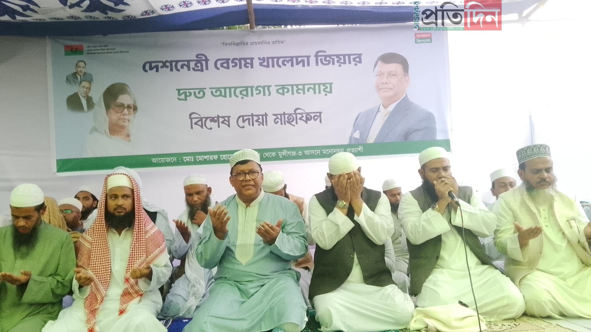 মুন্সীগঞ্জ : মুন্সীগঞ্জ সদর উপজেলার রামপাল ইউনিয়নের হাতিমারা বালুর মাঠে বিএনপি চেয়ারপারসন ও সাবেক তিনবারের প্রধানমন্ত্রী বেগম খালেদা জিয়ার রোগমুক্তি ও সুস্থতা কামনায় দোয়া ও মিলাদ মাহফিল অনুষ্ঠিত হয়েছে।