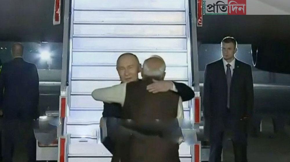 বিমান থেকে নামার সঙ্গে সঙ্গে রুশ প্রেসিডেন্টকে আবেগাপ্লুত হয়ে জড়িয়ে ধরেন ভারতের প্রধানমন্ত্রী। সেখান থেকে একই গাড়িতে করে যাত্রা শুরুর আগে দুই নেতা করমর্দন করেন এবং পরস্পরকে জড়িয়ে ধরেন।