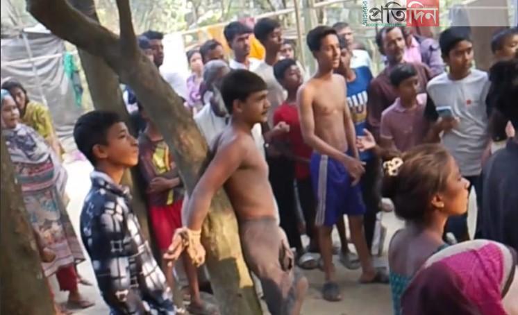 মোবাইল চুরির অভিযোগে কিশোরকে গাছের সঙ্গে বেঁধে পিটুনি