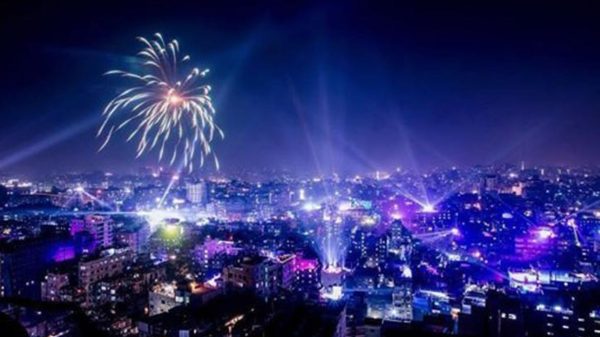 বুধবার দিবাগত রাত ১২টা বাজার সঙ্গে সঙ্গেই ঢাকার আকাশে দেখা যায় বর্ণিল আলোর ঝলকানি, যা নতুন বছরের আগমণী বার্তা নিয়ে আসে।