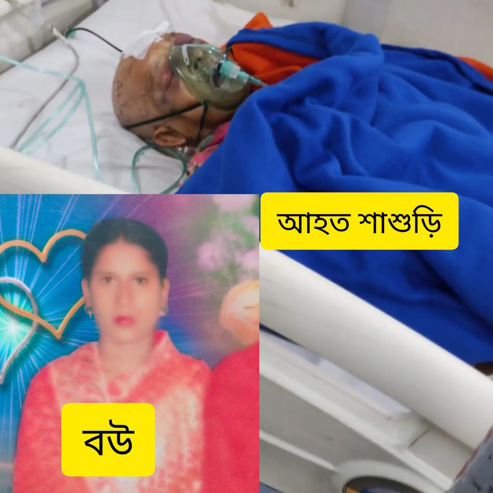 শাশুড়ি মা,কে মাটিতে ফেলে দিয়ে ধারালো অস্ত্র দিয়ে মাথায় আঘাত করে পুত্রবধূ জামরুন্নাহার ও তার ছোট ভাই মিজান।