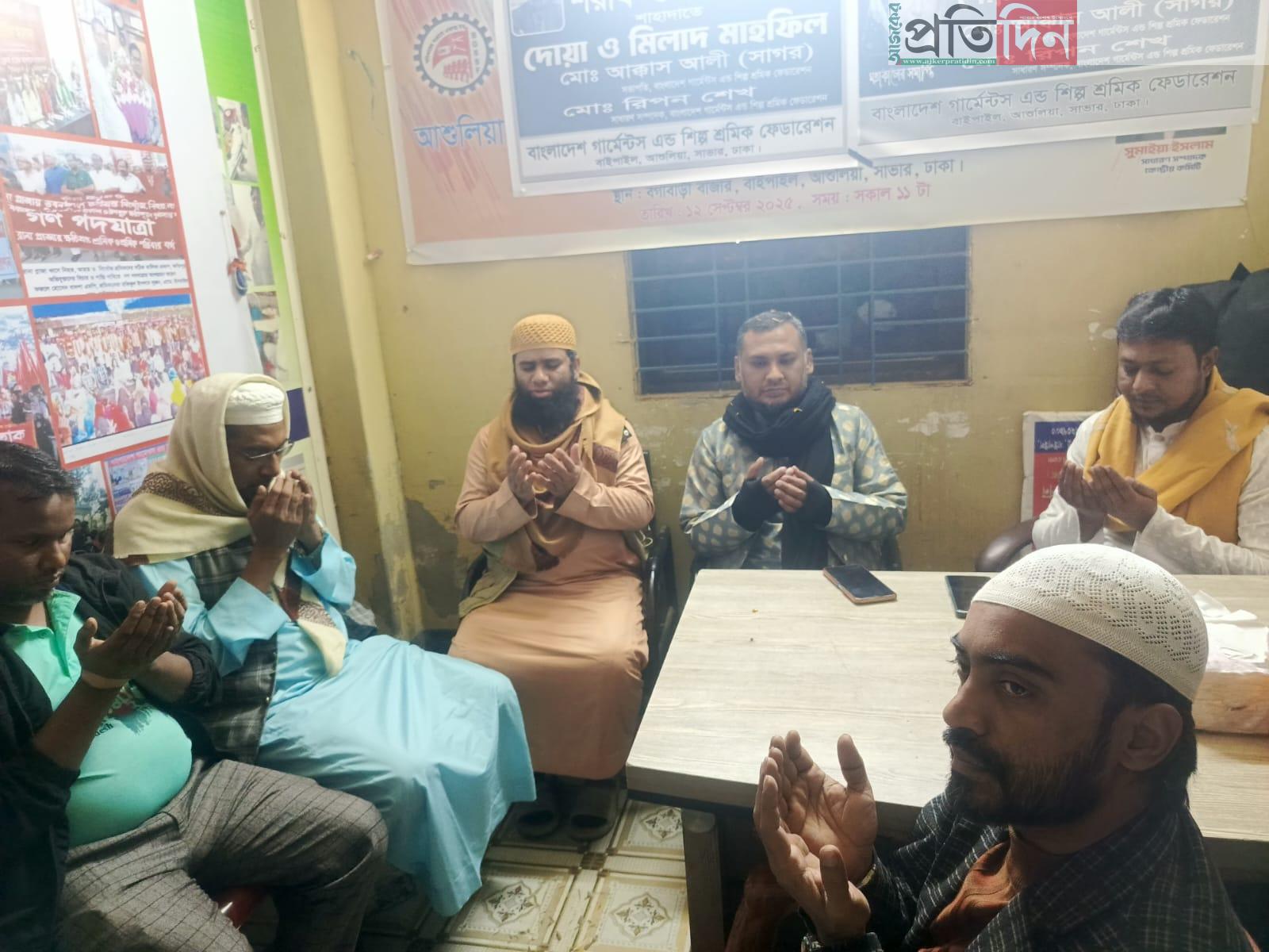 দোয়া ও মিলাদ মাহফিলে বাংলাদেশ গার্মেন্টস এন্ড শিল্প শ্রমিক ফেডারেশনের নেতাকর্মীসহ বিভিন্ন শ্রেণি-পেশার মানুষ অংশগ্রহণ করেন।