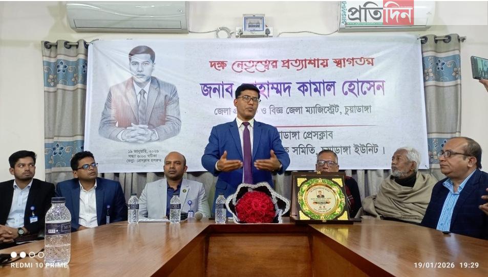 প্রেসক্লাব ও বাংলাদেশ সাংবাদিক সমিতি চুয়াডাঙ্গা ইউনিটের আমন্ত্রণে প্রথমবারের মতো প্রেসক্লাব পরিদর্শনে আসেন জেলা প্রশাসক। তিনি সাংবাদিক নেতৃবৃন্দের সাথে খোলামেলা আলোচনার পরিবেশ তৈরির জন্য ধন্যবাদ জানান। তিনি আরও বলেন, চুয়াডাঙ্গায় যোগদানের পর দুইটি বড় চ্যালেঞ্জ দেখেছেন মাথাভাঙ্গা নদীর অবৈধ দখল ও দুষণ এবং সীমান্তবর্তী হওয়ায় মাদকের প্রবেশ ও মাদকাসক্তি বৃদ্ধি। এছাড়া তিনি তামাক চাষকে মাদক ব্যবহারের প্রথম ধাপ হিসেবে উল্লেখ করেন এবং অভিভাবকদের প্রতি সন্ধ্যার পর সন্তানদের বাইরে না যাওয়ার অনুরোধ জানান।