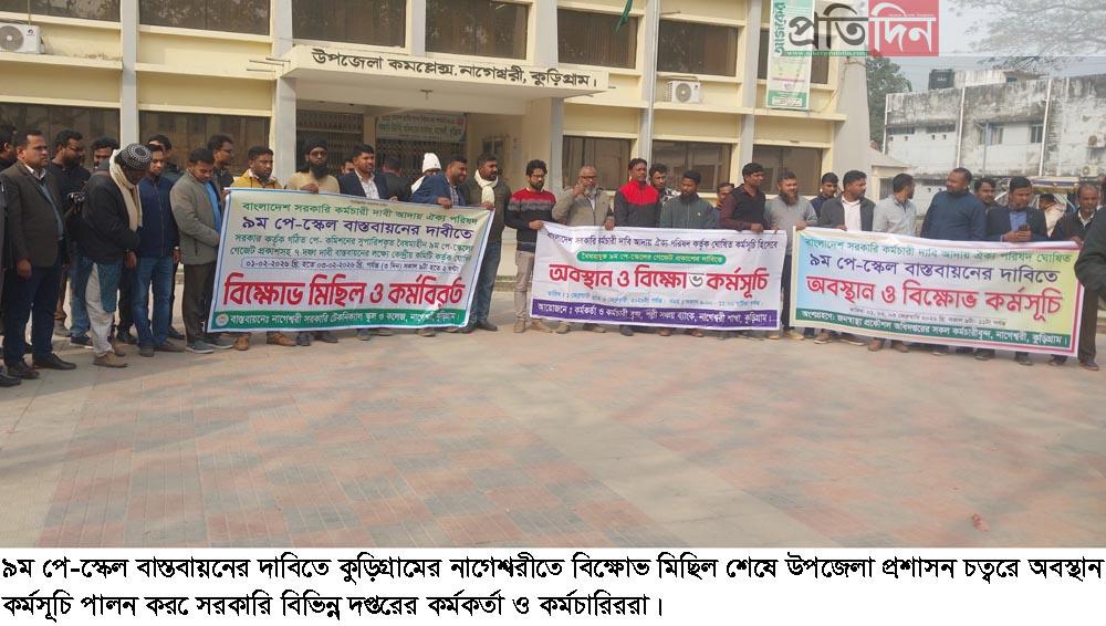 পে-স্কেল বাস্তবায়নের দাবিতে নাগেশ্বরীতে বিক্ষোভ ও অবস্থান কর্মসূচি