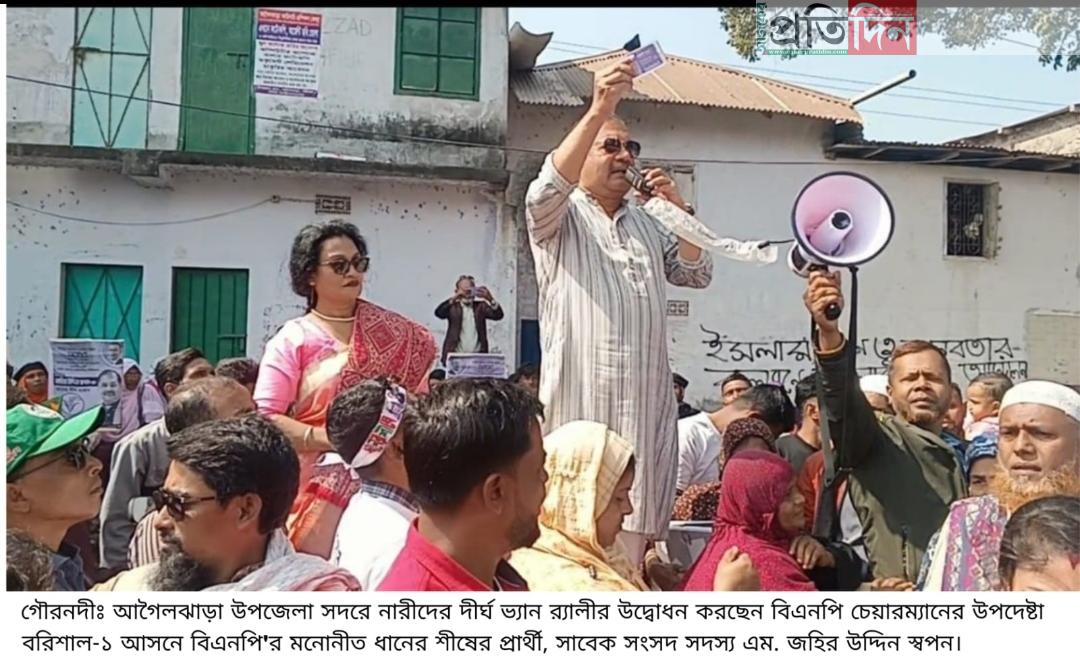 কর্মজীবী নারী সম্পর্কে অশালীন মন্তব্যের প্রতিবাদে আগৈলঝাড়ায় নারীদের দীর্ঘ ভ্যান র‍্যালী ‎