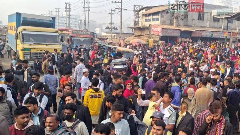 অবরোধকারীরা জানান, সোমবার ছিল অধিকাংশ পোশাক কারখানার শেষ কর্মদিবস। আসন্ন জাতীয় নির্বাচন উপলক্ষে শ্রমিক ও সাধারণ মানুষ গ্রামের বাড়িতে ভোট দিতে যাওয়ার উদ্দেশে রওনা দিলে বাসচালক ও সহকারীরা সুযোগ নিয়ে স্বাভাবিক ভাড়ার তুলনায় কয়েকগুণ বেশি ভাড়া আদায় করছেন। অতিরিক্ত ভাড়া আদায় বন্ধ এবং ন্যায্য ভাড়া কার্যকরের দাবিতে তারা সড়ক অবরোধে নামেন।