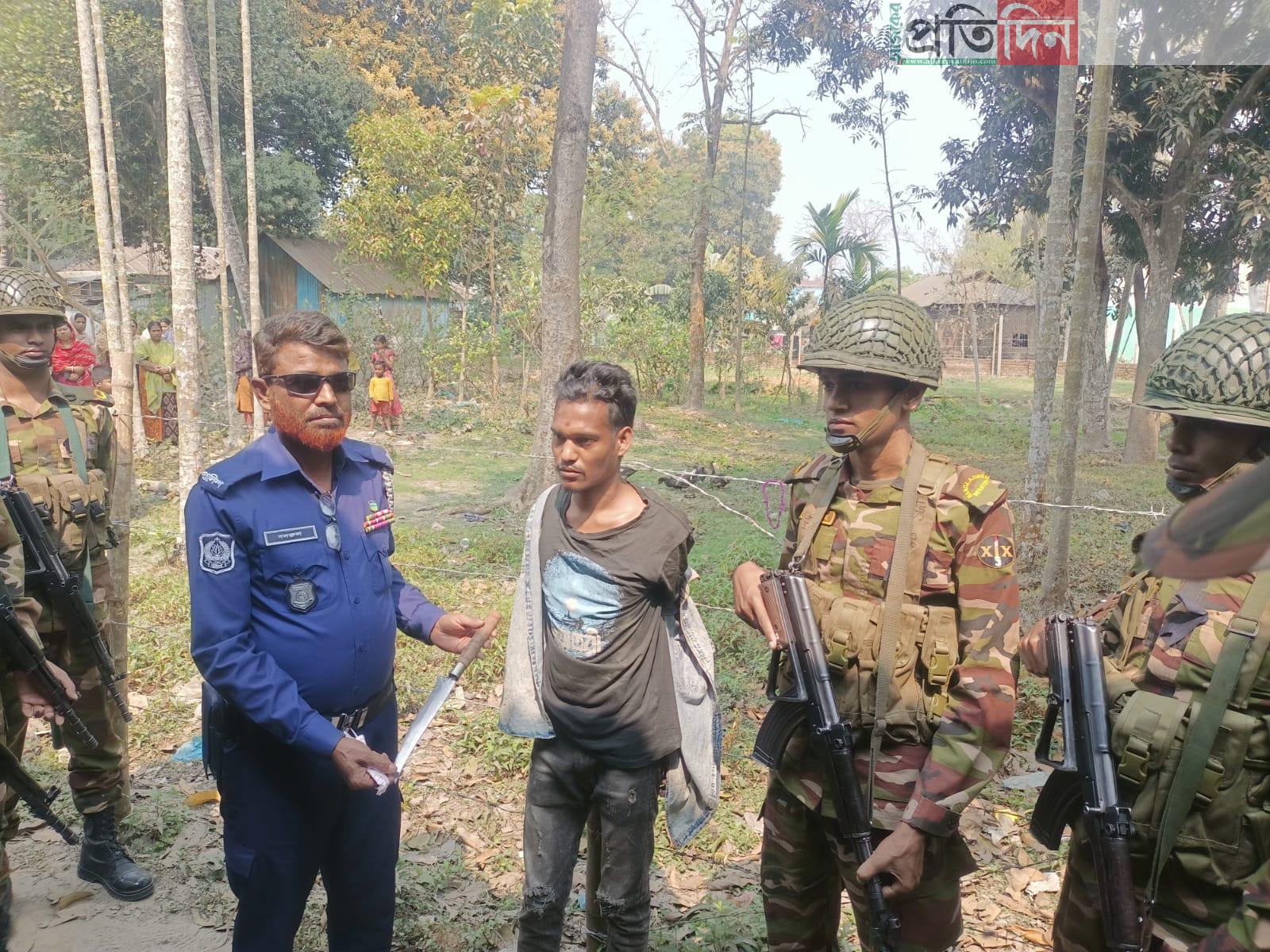 পরে স্থানীয় লোকজন পুলিশ ও যৌথ বাহিনীকে খবর দেন। যৌথ বাহিনী সদস্যরা দ্রুত ঘটনাস্থলে এসে তাকে আটক করতে সক্ষম হয়।পরে তাকে পুলিশের কাছে হস্তান্তর করেন।
