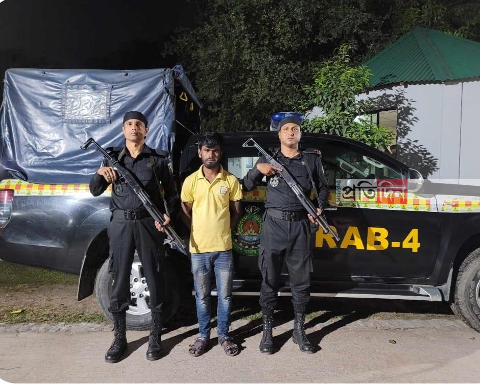রবিবার (২৫ ফেব্রুয়ারি) দুপুরে এক প্রেস বিজ্ঞপ্তির মাধ্যমে এ তথ্য জানান র্যাব-৪ সিপিসি-২–এর কোম্পানি কমান্ডার লেফটেন্যান্ট রাকিব মাহমুদ খান।এর আগে, ২৪ ফেব্রুয়ারি ধামরাইয়ে অভিযান চালিয়ে তাকে গ্রেপ্তার করা হয়।
