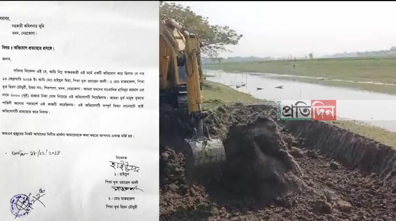 সরকারি নদী থেকে মাটি বিক্রি সাংবাদিকের নামে মিথ্যা অভিযোগ প্রত্যাহার করল ভেকু ব্যবসায়ী