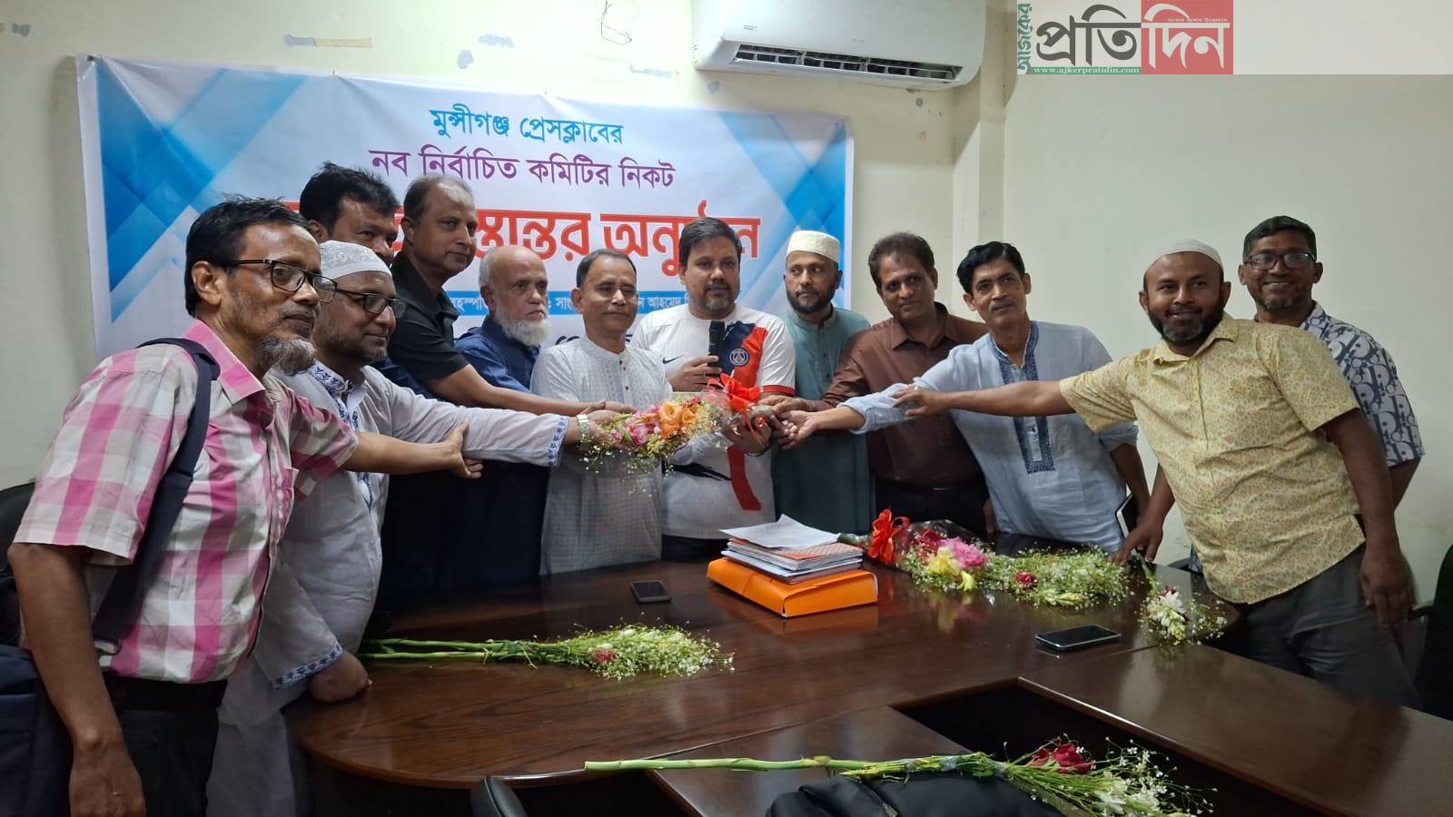 মুন্সীগঞ্জ প্রেসক্লাবের নব-নির্বাচিত কমিটির কাছে দায়িত্ব হস্তান্তর