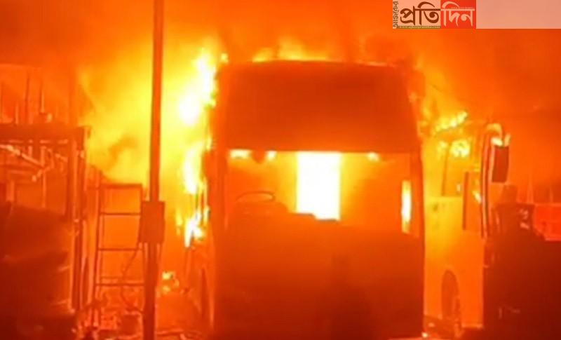 সাভারে বাসে ভয়াবহ আগুন