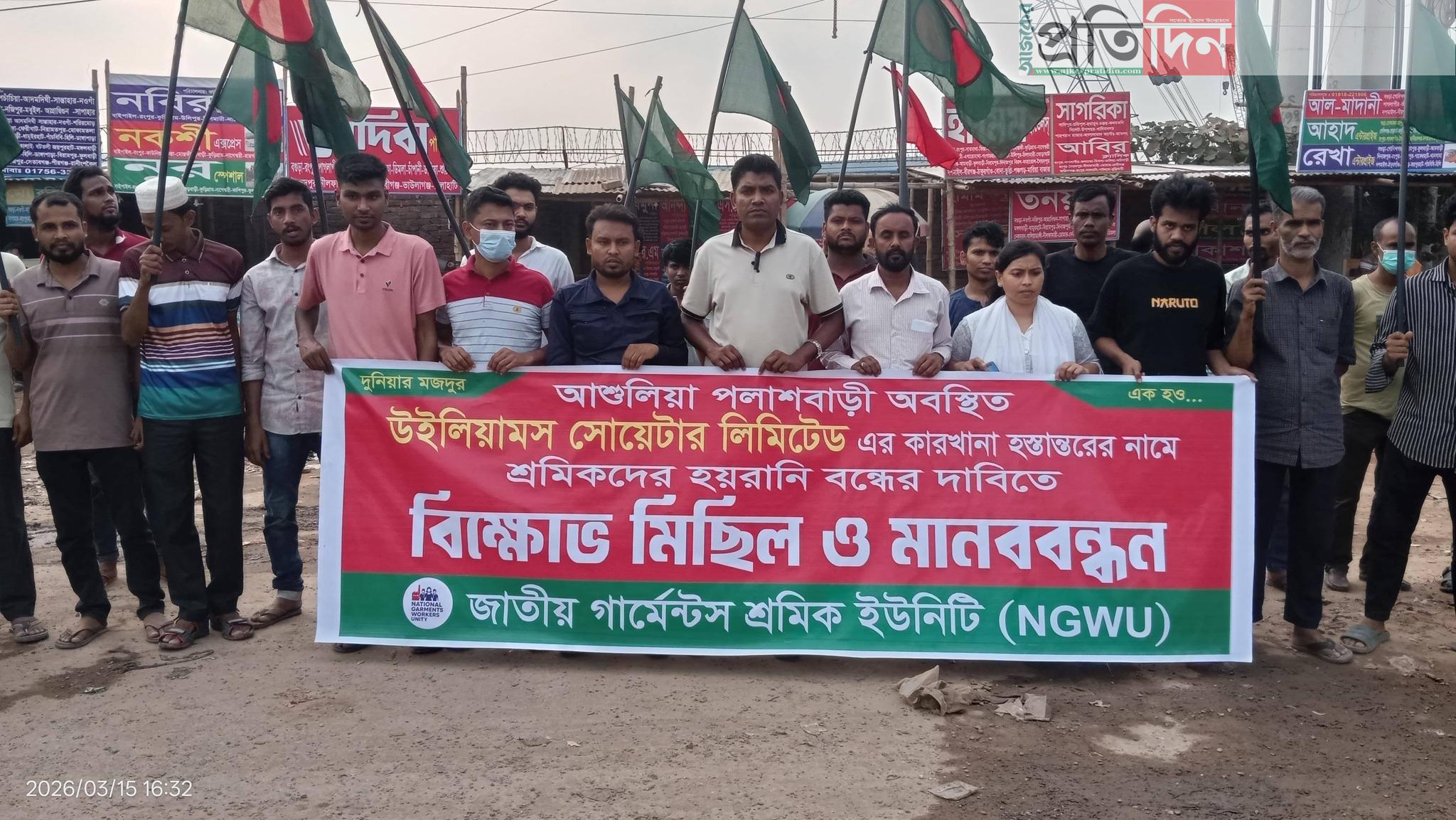 উইলিয়ামস সোয়েটার লিমিটেড স্থানান্তরের সিদ্ধান্তে ক্ষোভ, আশুলিয়াযর বাইপাইলে শ্রমিকদের বিক্ষোভ
