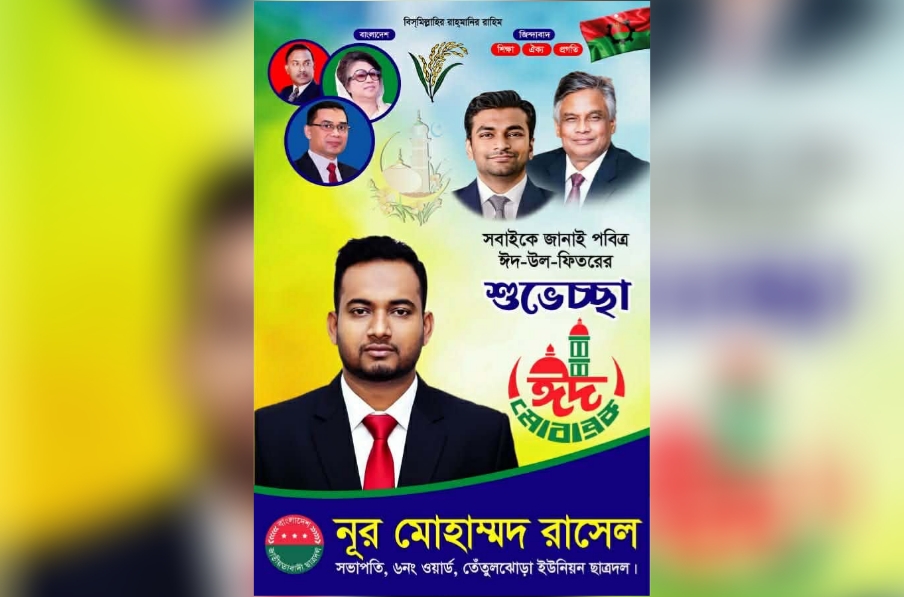পবিত্র ঈদ-উল-ফিতর উপলক্ষে দেশবাসীকে আন্তরিক শুভেচ্ছা ও ঈদ মোবারক জানিয়েছেন তেঁতুলঝোড়া ইউনিয়ন ছাত্রদলের ৬নং ওয়ার্ডের সভাপতি নূর মোহাম্মদ।