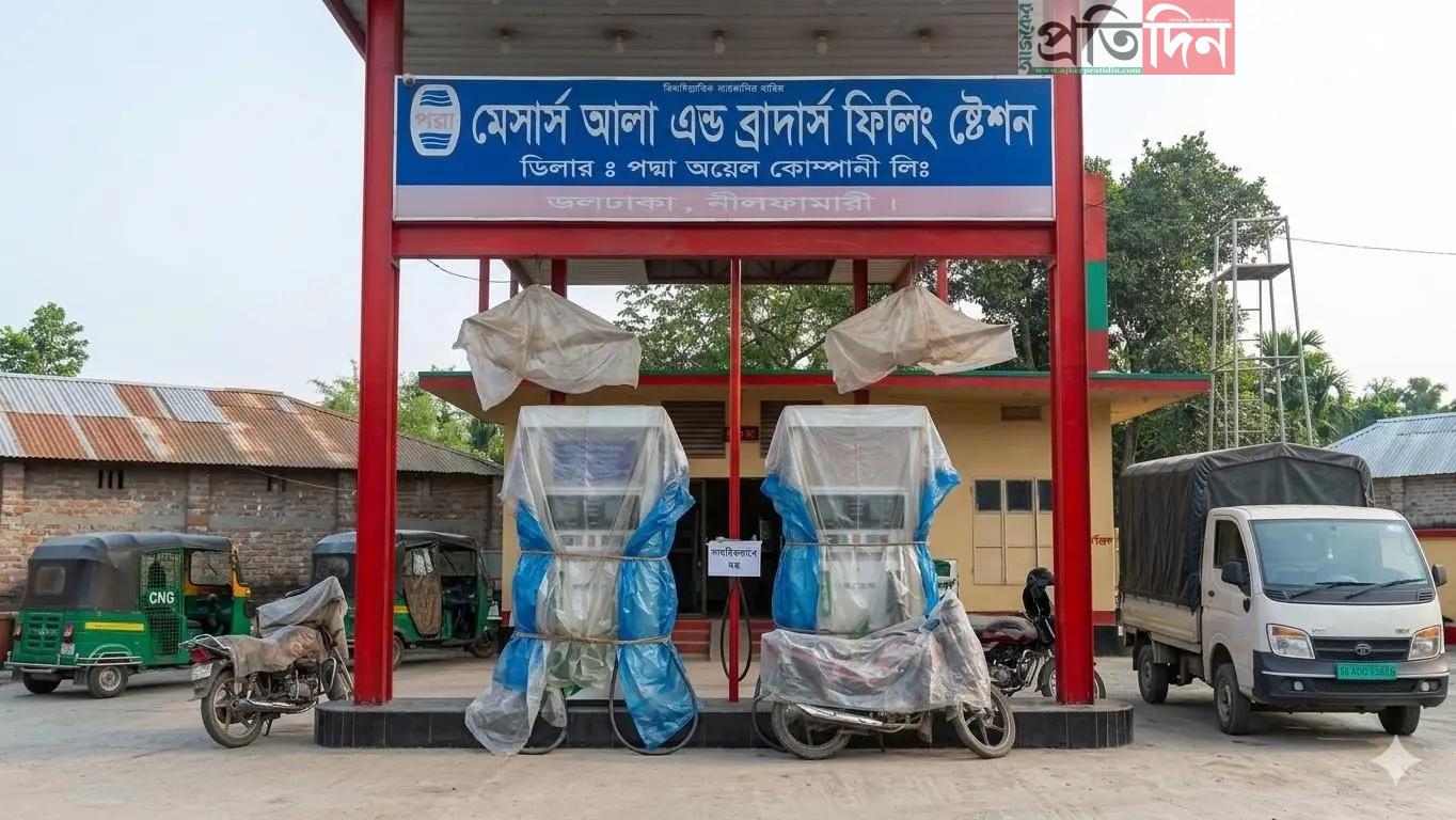 জলঢাকায় পাম্পে তেলের তীব্র সংকট, খোলাবাজারে চড়া দামে তেল বিক্রি