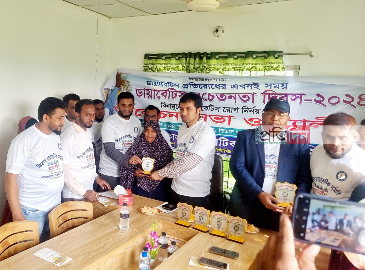 কুমিল্লার তিতাসে ডায়াবেটিস সচেতনতা দিবস উদযাপন উপলক্ষ্যে আলোচনা সভা ও র্যালী অনুষ্ঠিত হয়েছে। "ডায়াবেটিস প্রতিরোধের এখনই সময়" এই স্লোগানে গতকাল বুধবার সকালে তিতাস ডায়াবেটিক সমিতির আয়োজনে বিনামূল্যে ডায়াবেটিস রোগ নির্ণয়, আলোচনা সভা ও র্যালী এবং আদর্শ ডায়াবেটিক রোগীদেরকে ক্রেস্ট প্রদান করা হয়।