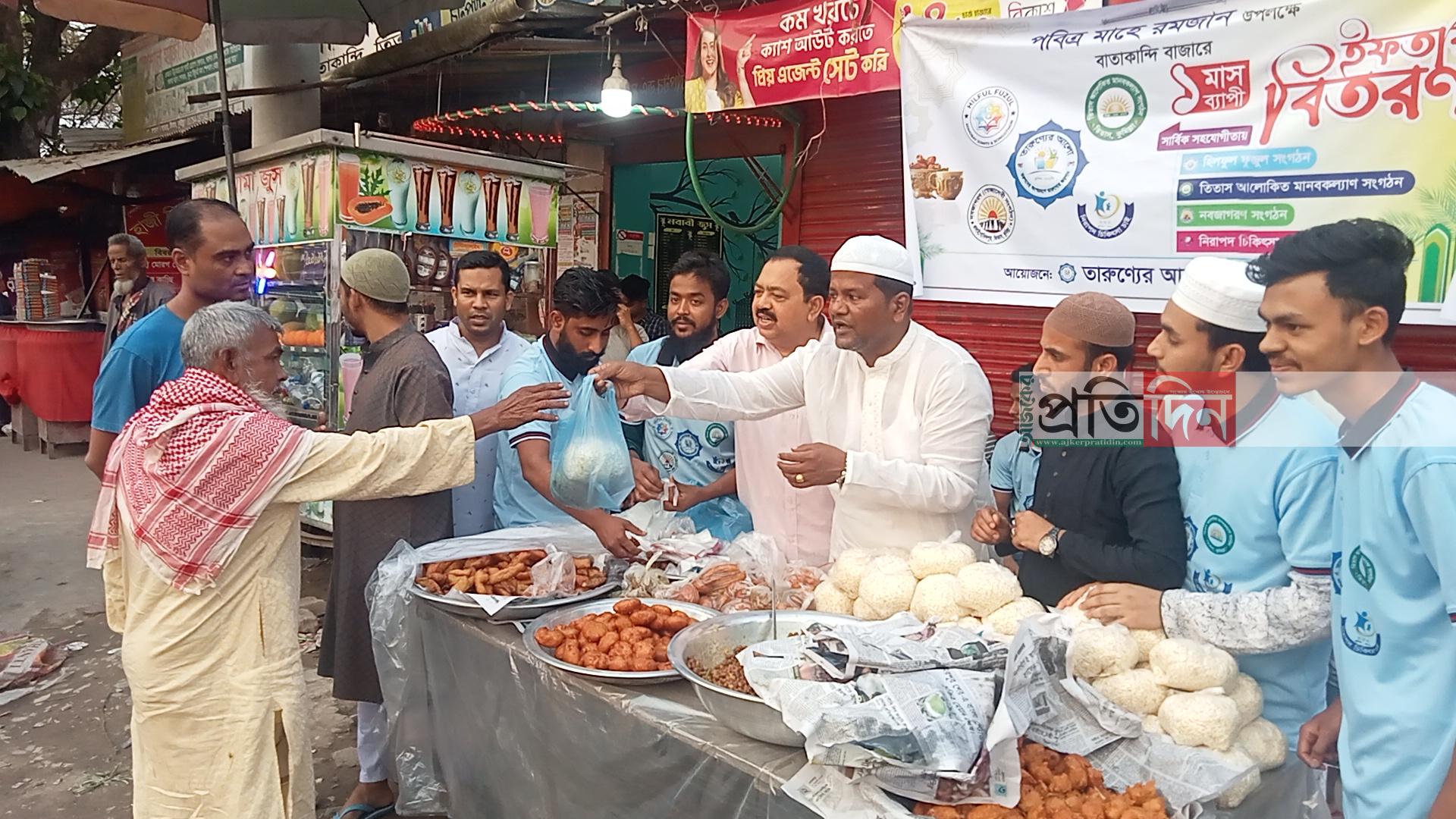 কুমিল্লার তিতাসে পথচারীদের মধ্যে ইফতার সামগ্রী বিতরণ করা হয়েছে।তিতাস আলোকিত মানবকল্যাণ সংগঠন,নিরাপদ চিকিৎসা চাই, তারুণ্যের আলো, হিলফুল ফুজুল, নবজাগরণ নামে এই ৫ টি সংগঠনের উদ্যোগে গত মঙ্গলবার বিকেলে উপজেলার বাতাকান্দি বাসস্ট্যান্ডের পথচারীদের মধ্যে ইফতার সামগ্রী বিতরণ করা হয়।