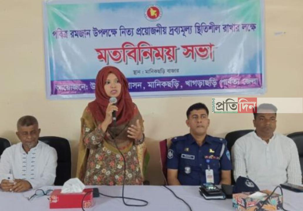 রমজানে নিত্য প্রয়োজনীয় দ্রব্যমূল্য স্থিতিশীল রাখতে খাগড়াছড়ির মানিকছড়ি উপজেলার বিভিন্ন হাট বাজার ব্যবসায়ীদের সাথে মত বিনিময় করেছে মানিকছড়ি উপজেলা প্রশাসন।