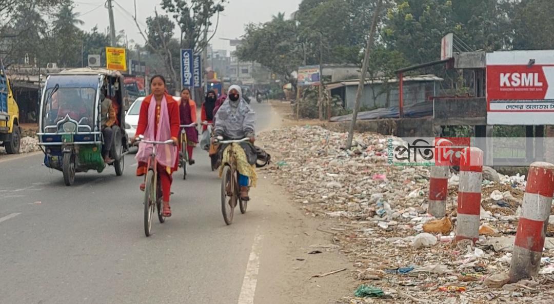 শহরের রাস্তার দু’ধারে বিশাল ময়লার ভাগাড় দুর্গন্ধে ও কুকুরের উৎপাতে অতিষ্ঠ পোরবাসী