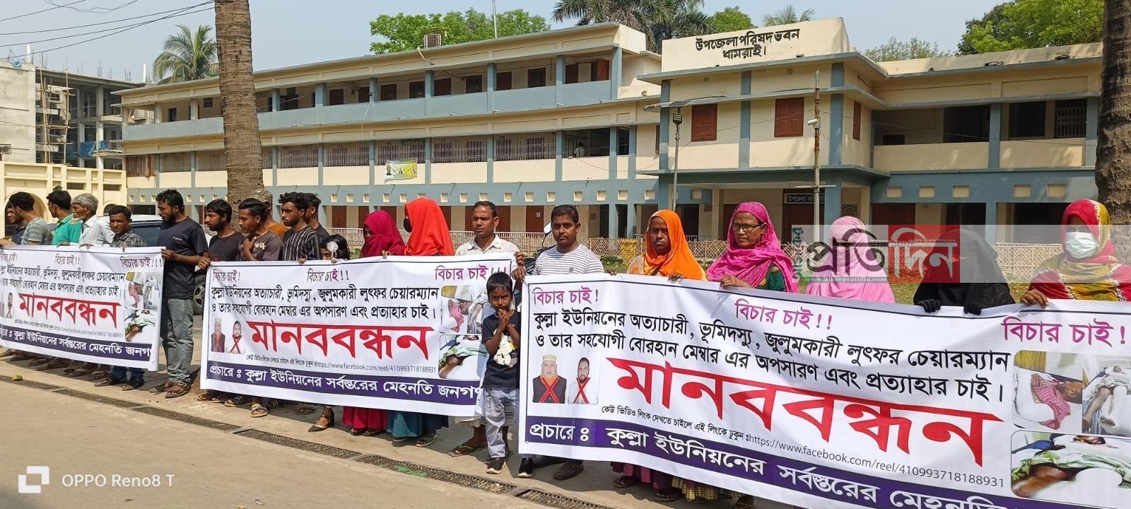 ধামরাইয়ে চেয়ারম্যানের শাস্তির দাবিতে মানববন্ধন