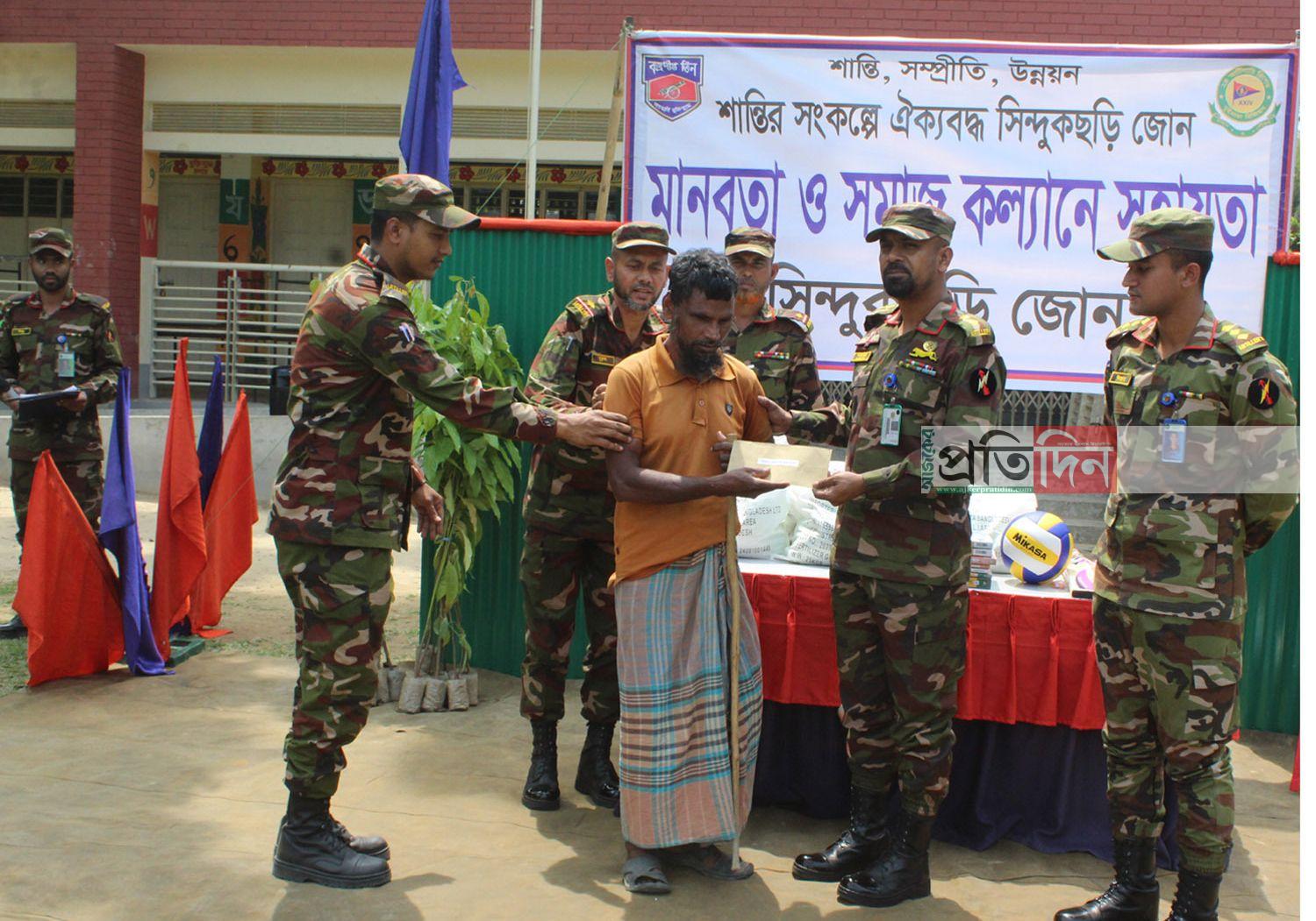 সিন্দুকছড়ি জোন ৩ ফিল্ড রেজিমেন্ট আর্টিলারি উদ্যোগে মানিকছড়ি উপজেলায় বাটনাতলীতে অসহায়, হতদরিদ্র, অস্বচ্ছল শিক্ষার্থী, শিক্ষা প্রতিষ্ঠান ও ফলজ গাছ, ক্লাব, মাদ্রাসায় মাঝে বাংলাদেশ সেনাবাহিনীর মানবতা ও সমাজ কল্যাণে বিশেষ সহায়তা প্রদান করা হয়েছে।