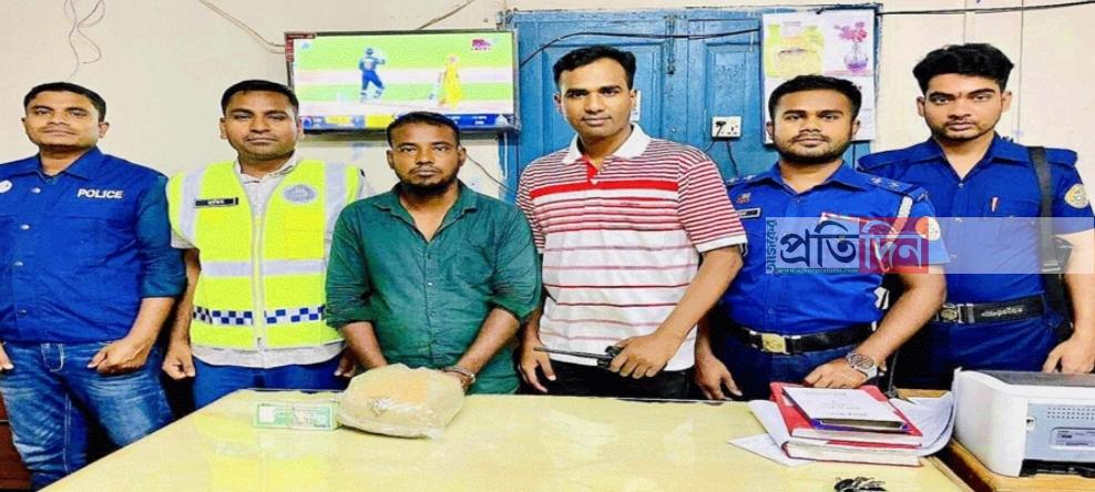 সংবাদ পেয়ে উজিরপুর মডেল থানার ওসি (তদন্ত) জনাব মোঃ তৌহিদুজ্জামান সোহাগ এবং এস আই মোঃ রাকিবুল ইসলাম সহ ফোর্স নিয়ে ঘটনাস্থলে উপস্থিত হলে একটি বাজার করার প্লাষ্টিক ব্যাগে কঁচটেপ পেঁচানো ১ কেজি ২ গ্রাম গাঁজা সহ হাতেনাতে আটক করা হয় ।