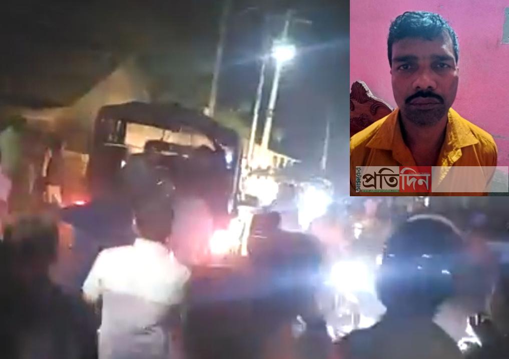 এতে মূহুর্তেই সেখানকার পরিস্থিতি অস্বাভাবিক হয়ে ওঠে। খবর পেয়ে ফায়ার সার্ভিসের সদস্যরা ঘটনাস্থলে এসে মোটরসাইকেলের আগুন নেভায়। এরইমধ্যে ঘটনাস্থলে এসপি সার্কেল রেজাউল হক, ইউএনও রকিবুল হাসান, ওসি সোহেল রানা সঙ্গীয় পুলিশ, আনসার ও ফায়ার সার্ভিসের ৩০-৩৫ জনের সদস্য ঘটনাস্থলে এসে হাজির হন। উত্তেজিত হাজারো জনতা তাদের দুজনকে বাড়ি থেকে বের করে গণপিটুনি দিতে চায়। এতে পুলিশ বাঁধা দেয়। প্রায় দুই ঘন্টাব্যাপি পুলিশ ও জনতার মধ্যে ধাওয়া পাল্টা ধাওয়া চলে। ক্ষিপ্ত জনতা পুলিশের উপর ইটপাটকেল ছুঁড়াছুড়ি করে। এক পর্যায়ে পুলিশ লাঠিচার্জ করে জনতাকে সরিয়ে রাজ্জাক ও তার সহকর্মী রেজওয়ানকে রাত দশ টায় ঘটনাস্থল থেকে উদ্ধার করতে সক্ষম হয় এবং গ্রেফতার করে থানায় নিয়ে যায়।এএসপি সার্কেল রেজাউল হক আরো বলেন, রাজ্জাকের বিরুদ্ধে একাধিক মামলা রয়েছে। বিষয়টি খতিয়ে দেখা হচ্ছে। তাদের দু'জনকে থানা কাস্টডিতে নেওয়া হয়েছে। রাজ্জাকের বিরুদ্ধে দৃষ্টান্তমূলক শাস্তির ব্যবস্থা নেওয়া হবে মর্মেও তিনি জানান।