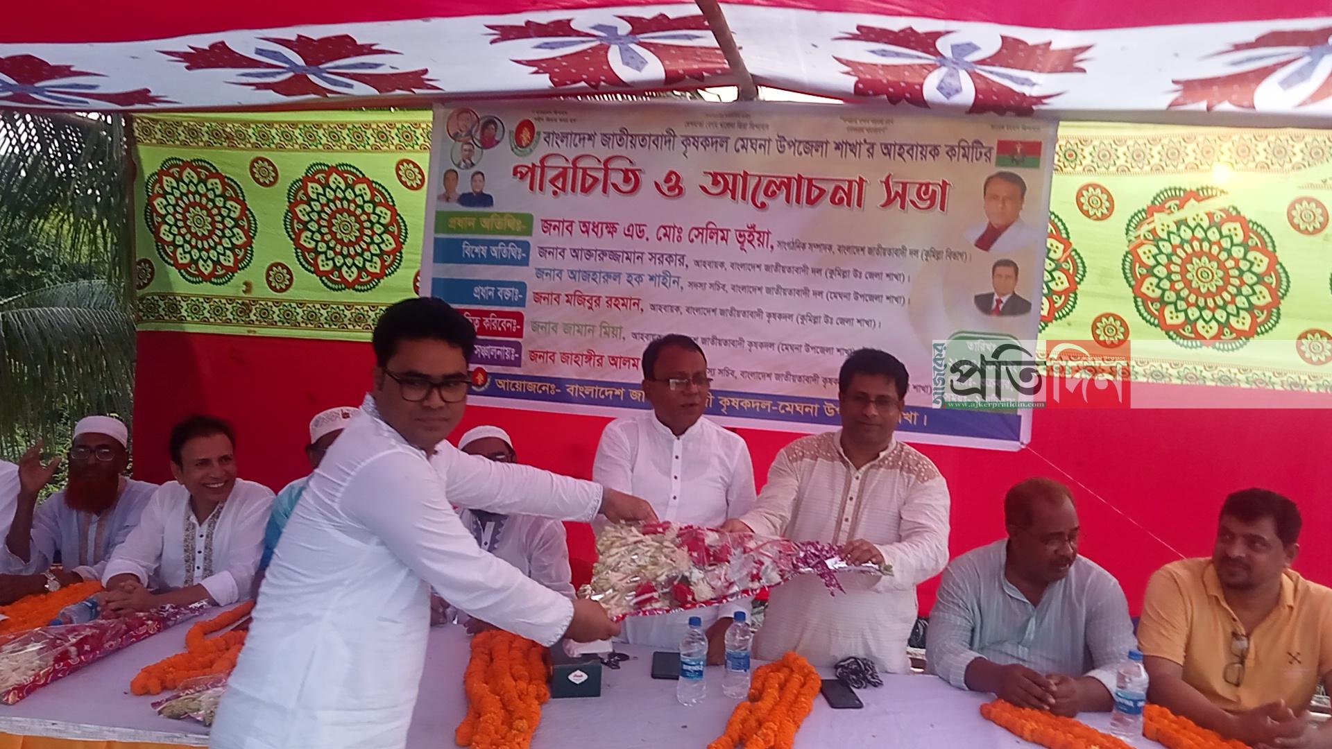 কুমিল্লার মেঘনা উপজেলা কৃষক দলের নবগঠিত আহবায়ক কমিটির পরিচিত ও আলোচনা সভা অনুষ্ঠিত হয়েছে।বাংলাদেশ জাতীয়তাবাদী দল বিএনপির কুমিল্লা বিভাগীয় সাংগঠনিক অধ্যক্ষ অ্যাডভোকেট মো.সেলিম ভূইয়া'র মাধবপুরের বাসভবনে গত শুক্রবার বিকেলে মেঘনা উপজেলা কৃষক দলের নবগঠিত আহবায়ক কমিটির পরিচিত ও আলোচনা সভা অনুষ্ঠিত হয়।
