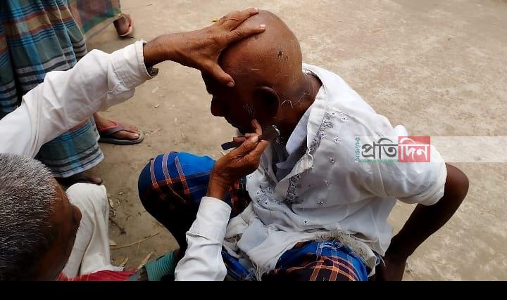 ঠাকুরগাঁওয়ে হারিয়ে যাচ্ছে পিঁড়িতে বা খাটে বসে চুল দাড়ি কাটার দৃশ্য