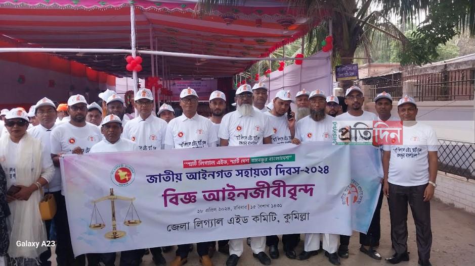 "স্মার্ট লিগ্যাল এইড, স্মার্ট দেশ বঙ্গবন্ধুর বাংলাদেশ"-এই প্রতিপাদ্য সামনে রেখে ২৮ এপ্রিল সারাদেশের ন্যায় কুমিল্লায়ও বিভিন্ন কর্মসূচির মধ্যদিয়ে পালিত হলো জাতীয় আইনগত সহায়তা দিবস।