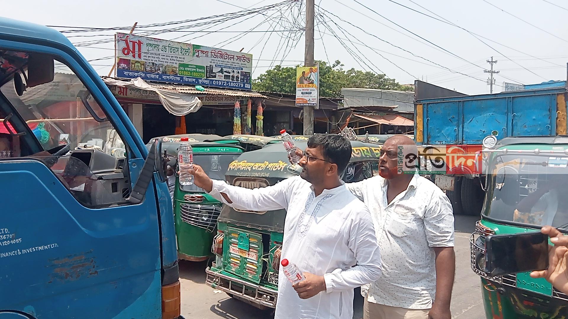 পানি বিতরণকালে বক্তব্য রাখেন উপজেলা তাঁতী লীগের সভাপতি মো. রেজাউল ইসলাম মোল্লা।