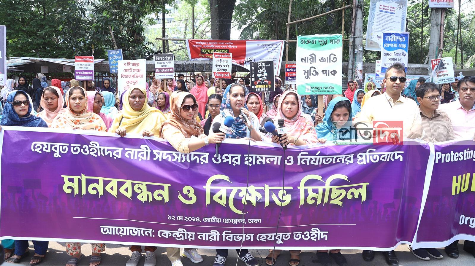 হেযবুত তওহীদের নারীদের ওপর হামলা ও নির্যাতনের প্রতিবাদে মানববন্ধন ও বিক্ষোভ মিছিল