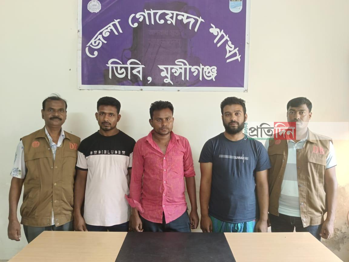 গ্রেফতারকৃতরা হলেন, ১। সাহিদ শেখ, শ্রীনগর উপজেলার দেউলভোগ শিমুলপাড়া এলাকার করিম চৌকিদারের ছেলে, সাগর শেখ, টংগীবাড়ী উপজেলার উত্তর পাইকপাড়া এলাকার জাহাঙ্গীরের ছেলে ও ট্রাক চালক মোঃ মিঠু ভোলার তজিমুদ্দিন উপজেলার তজিমুদ্দিন এলাকার মোঃ কুটি মিয়ার ছেলে।