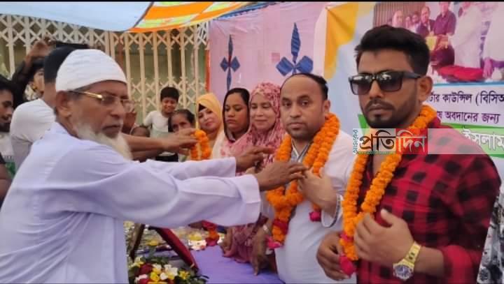 এতে গর্বিত হয়ে জগতপুর ইউনিয়নের ভাটিপাড়া গ্রামবাসী গতকাল শনিবার সন্ধ্যায় উপজেলা আওয়ামী মৎস্যজীবী লীগের সদস্য সচিব ও জাগ্রত একতা সংঘের সভাপতি হাজী শফিকুল ইসলামকে এ সংবর্ধনা প্রদান করে।