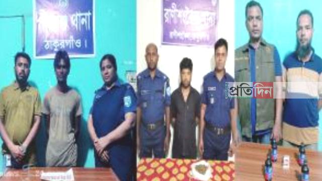 প্রতিবেদনে পুলিশ সুপার উত্তম প্রসাদ পাঠক জানান, গত ২৪ ঘণ্টায় জেলার বিভিন্ন থানা পুলিশের পৃথক পৃথক অভিযানে মদকদ্রব্যসহ ৬ জনকে গ্রেপ্তার করা হয়। এদের মধ্যে ঠাকুরগাঁও সদর থানা পুলিশ সালন্দর ইউনিয়নের গড়েয়া রোডস্থ ঠাকুরগাঁও হোমিওপ্যাথিক মেডিক্যাল কলেজ ও হাসপাতালের মেইন গেটের সামনে অভিযান চালায়।