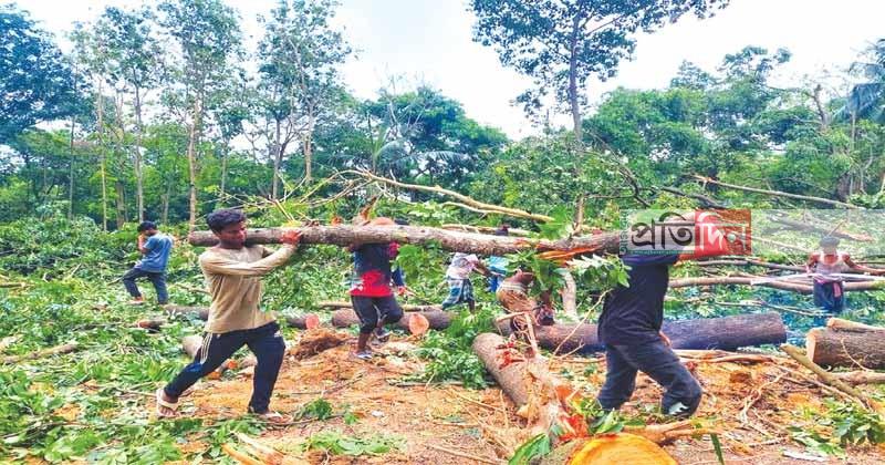 সরেজমিনে ঘুরে দেখা যায়, এস্কেভেটর দিয়ে গাছগুলো উপড়ে ফেলা হয়েছে। এরপর কয়েকজন মানুষ সেগুলো কেটে কেটে অনত্র সরিয়ে ফেলছেন। দুই ভবন নির্মাণের জন্য প্রায় দুই শতাধিক গাছ কাটা পড়েছে। এছাড়া আরো প্রায় শতাধিক ছোট বড় গাছ কাটা পড়বে। এদিকে গাছ কাটার পর সেখানে আশ্রয় নেওয়া পাখিদের ছোটাছুটি চোখে পড়েছে। অন্যদিকে গাছ কাটার সময় স্ব স্ব অনুষদের শিক্ষক, শিক্ষার্থী ও ছাত্রলীগ নেতাকর্মীরা সেখানে উপস্থিত ছিলেন।