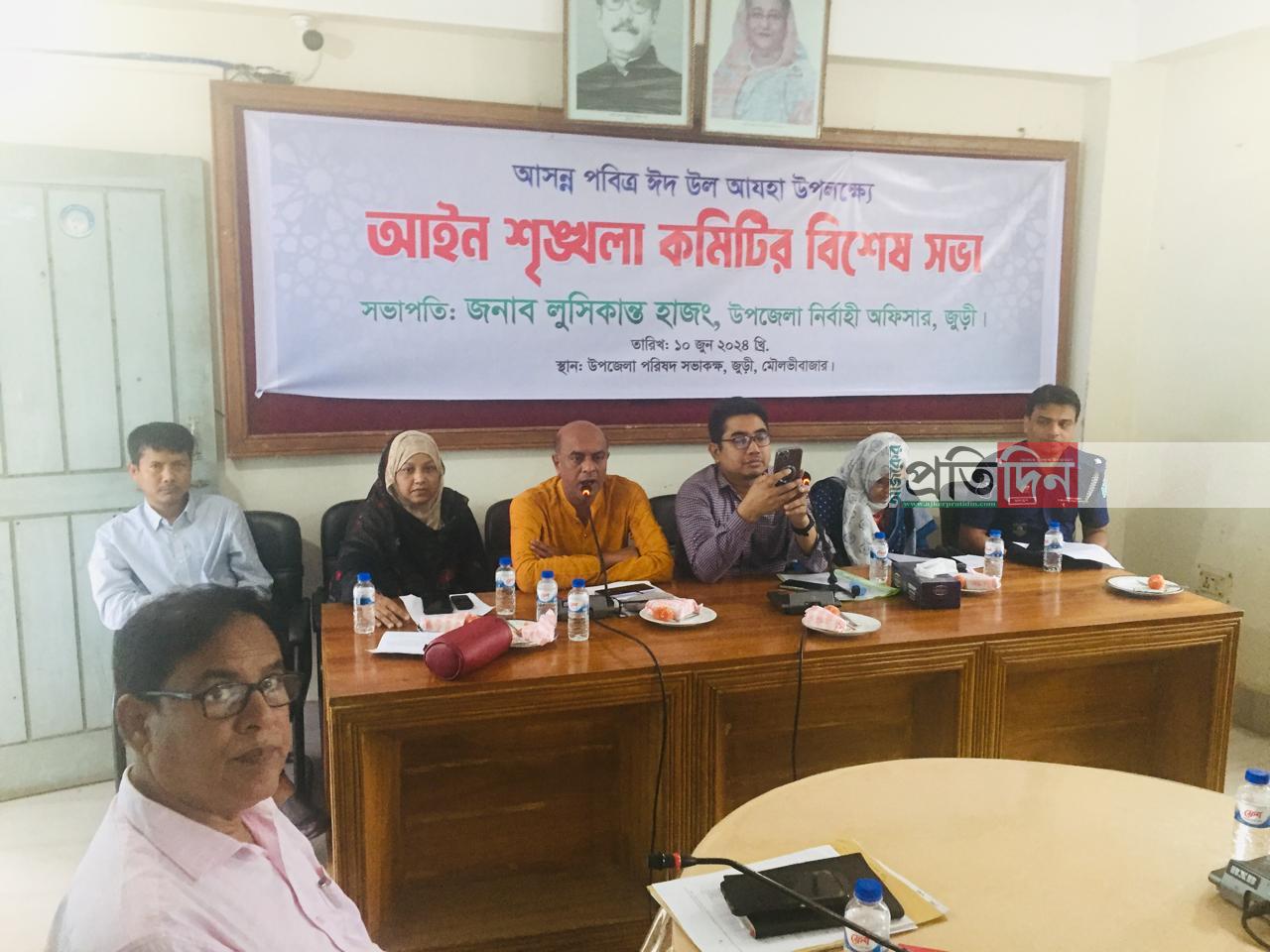 মৌলভীবাজার প্রতিনিধি : মৌলভীবাজারের জুড়ীতে আসন্ন পবিত্র ঈদুল আযহা উপলক্ষে আইন শৃঙ্খলা কমিটির বিশেষ সভা অনুষ্ঠিত হয়েছে।