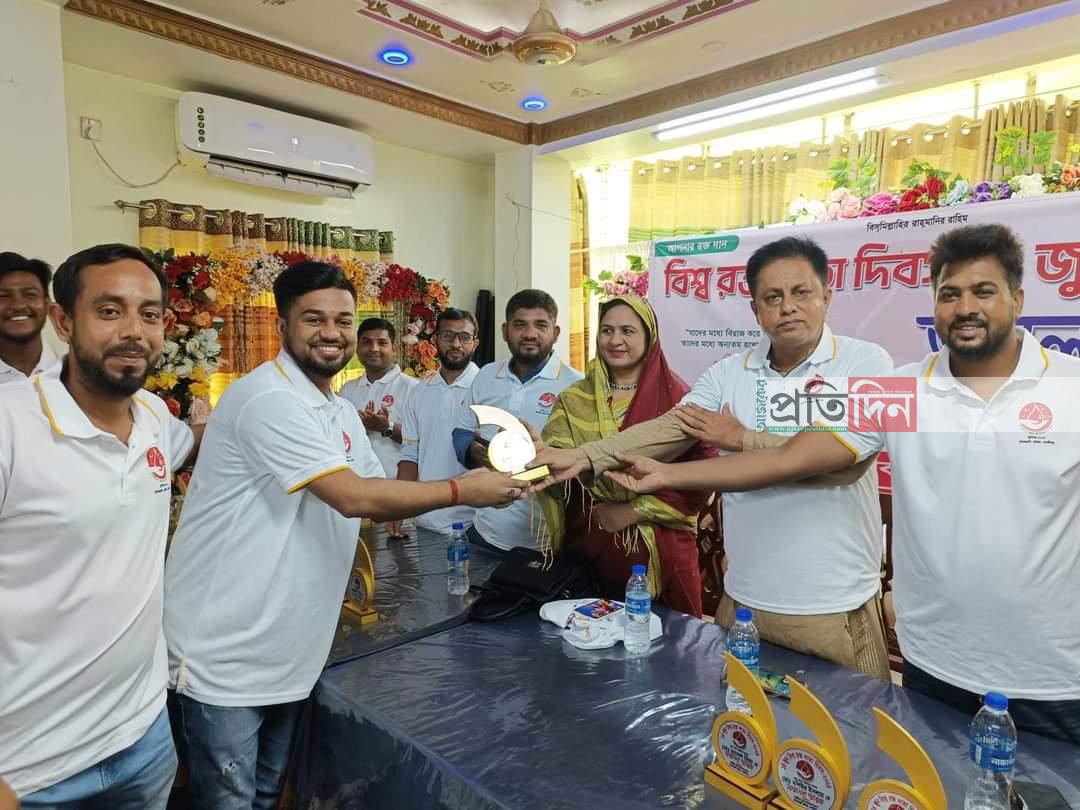 এ সময় রক্তদানে বিশেষ অবদান রাখায় সেচ্ছাসেবীদের হাতে সংবর্ধনা স্মারক তুলে দেওয়া হয় সম্মাননা স্মারক তুলে দেওয়া হয়।
