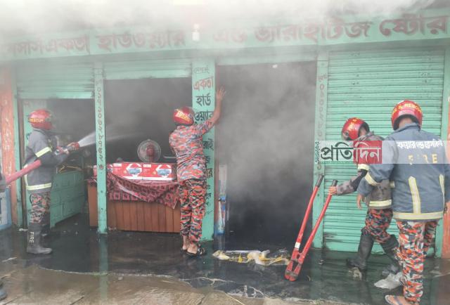 রোববার (২৩ জুন) সকাল সাড়ে ৯ টায় এ অগ্নিকাণ্ডের ঘটনা ঘটে। খবর পেয়ে ফায়ার সার্ভিসের একটি ইউনিট ঘটনাস্থলে গিয়ে আগুন নিয়ন্ত্রণে আনে। একতা হার্ডওয়ার এন্ড ভ্যারাইটিস স্টোর এর মালিক জবাইদুর রহমান (৫৫) ও কসমেটিক দোকানের মালিক নূর মোহাম্মদ (৫০) জানায় গতকাল রাতে প্রতিদিদের মতো দোকান বন্ধ করে বাড়ি যাই। সকালে দোকানে আগুন লেগেছে শুনে এসে দেখি প্রায় সব মালামাল পুড়ে ছাই হয়ে গেছে। স্থানীয়রা বলছে, বৈদ্যুতিক শটসার্কিট থেকে আগুনের সুত্রপাত হয়েছে বলে ধারনা করা হচ্ছে ।