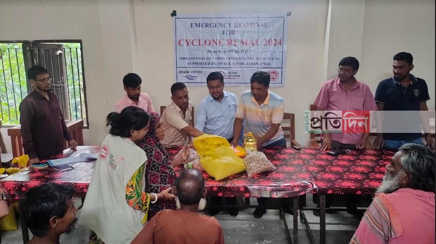 পটুয়াখালী জেলার গলাচিপা উপজেলার পানপট্টি ,ডাকুয়া ,চিকনিকান্দি ইউনিয়ন এ ঘূর্ণিঝড় রেমাল এ খতিগ্রস্থ, দরিদ্র, গর্ভবতী, পঙ্গু মানুষের মাঝে চডঔ এর সহযোগিতায় সিআইএস এর আয়োজন এ প্রয়োজনীয় খাদ্যসামগ্রী এবং মশারী বিতরণ করা হয়।