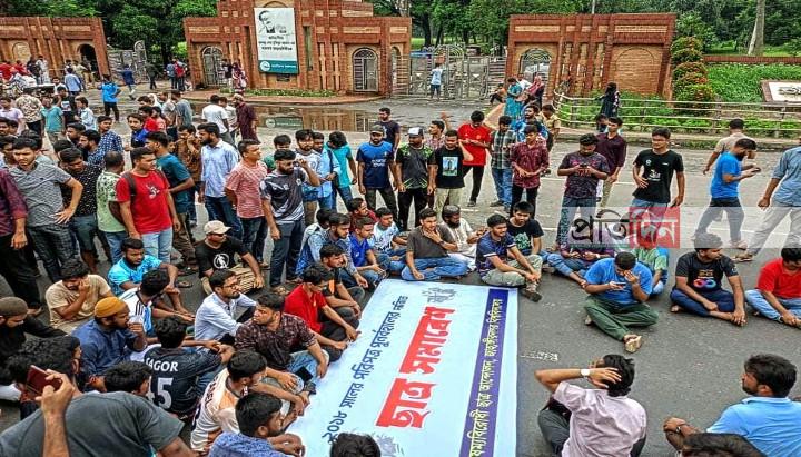 বৃহস্পতিবার দুপুর ১২টার দিকে বিশ্ববিদ্যালয়ের কেন্দ্রীয় গ্রন্থাগারের সামনে থেকে একটি বিক্ষোভ মিছিল বের করেন শিক্ষার্থীরা। এটি কয়েকটি সড়ক ঘুরে বিশ্ববিদ্যালয়ের প্রধান ফটকের সামনে গিয়ে শেষ হয়।